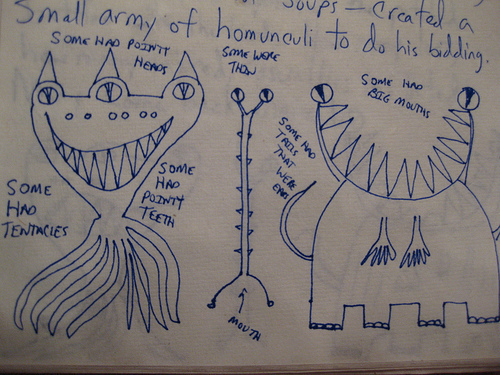 Thankfully, Ann's not gone blind yet–and my third eye decided to open up right as the other two were going blind, and now I'm reading something composed on its thorax and cinderhausenblickblick by a multi-dimensional thing out of Alpha Centauri. But, the tale's not quite right, and now I'm going to have to reject the story…and this thing has got tentacles in twelve dimensions, and ...