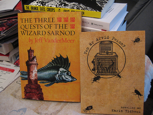(One book was small and one book was slightly smaller, but Alice noticed that the small book contained merely a world while the slightly smaller book contained worlds. "I'll take the slightly smaller book," Alice told the Caterpillar, "because there's more inside of it." "It's written in a language you can't read," the Caterpillar said. To which Alice haughtily replied, "Read?! Did I say I was going to read it? I'm going to live in it. My, the impudence of metamorphosally-arrested butterflies around here. This neighborhood's going to heck in handbasket." As she said those words, the Caterpillar stood up, pointed to the violet-tinged sky, let out a single shriek…and unpeeled from head to end like a cheap zippered bag. Out stepped the members of the band Abba, each with iridescent green butterfly wings. The lead singer stepped forward and said, "Oh, you will read it, Alice, or you'll spend an eternity with the Mad Hatter, and we don't mean Johnny Depp. You'll learn Swedish and you'll like it, and you'll even learn how to pronounce the writer's name, Karin Tidbeck." Alice wanted to say, "Can't I wait for the English translations?" but found that she had turned into a reindeer and her mouth was stuffed with cloudberries.)