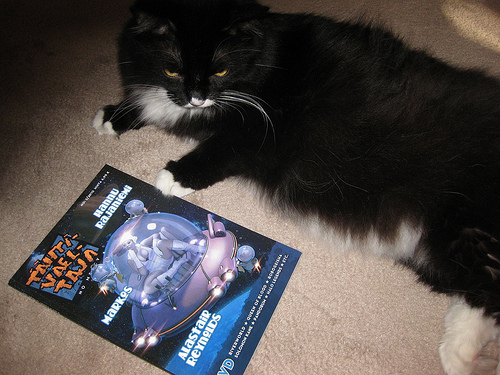 Whatever happened to bring me to this point, it's working out well. All three are amazing books. My first-read admiration for The Golden Age has deepened into adoration upon this second read, and brings me to the thought that I'm a little sick of lovers of self-defined commercial, escapist fiction claiming that's the stuff that needs our support; I think it'll do just fine without me, thanks. The first-time discoveries within The Tiger are startling and evocative, and somewhat documented in this Amazon blog entry I just posted. In parsing Gravity's, I reflect sadly that no real banana or banana feast will ever seem as grand as that documented within these pages.