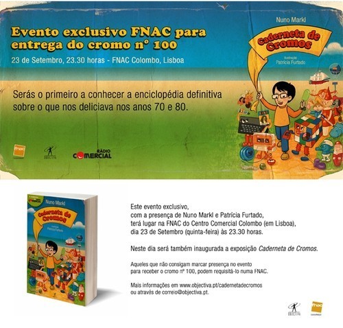 Caderneta de Cromos: cada vez há mais lojas interessadas em pré-vender o nosso querido canhenho e isso deixa-nos a todos, eu, a Patrícia Furtado, a editora Objectiva e a Rádio Comercial, assaz orgulhosos e felizes. Mas como tem sido o timbre das operações de pré-venda, desde que esta aventura começou, achamos que cada novo parceiro, na sua pré-venda, deve ter uma mais-valia que não a mera repetição do que está a acontecer no parceiro do lado.