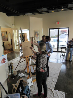 On to Chattanooga Wednesday, for an evening demo preceding a four day workshop hosted by the Townsend Atelier, which is really a spectacular studio space. Peggy and Stan Townsend have created a beautifully designed and functional area, serving workshops and learning of all kinds, including a small but VERY select art supply shop, flexible lighting, space arrangements and best of all, their incredibly gracious presence as workshop hosts. I fell very honored to have been selected to be one of their instructors as the teaching roster is filled with artist who (IMO) are for the most part, superstars. For my artist readers, if you get the chance to attend the Townsend Atelier, you will have a wonderful experience. We had a great group of artists in attendance, all focused and hard-working.