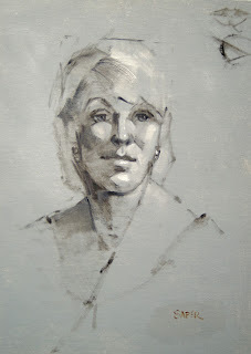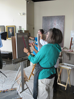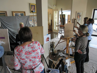 We had the chance to try out my new workshop syllabus, which involved a Day One morning monchrome oil demo, with students painting their portraits from life in monochrome oil and Torrit Grey, if they chose. Wonderful samples again provided courtesy of the Gamblin folks - thanks Dave and Scott:)