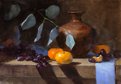 I recently took a four day workshop with Jeff Legg at the Scottsdale Artists' School, and I am pleased to say that I got out of it what I had hoped - mainly a new focus on designing and composing still life.