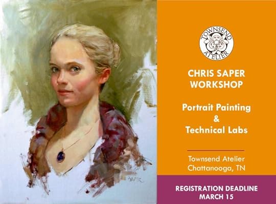 Nationally recognized portrait painter, Chris Saper has completed almost 400 commissioned portraits, authored four books and filmed four DVDs on portraiture. We are happy to have her teach a four-day workshop at Townsend Atelier where she will cover lots of ground including lighting, photographing the model, color, materials, capturing a likeness, professional development, marketing and more.
