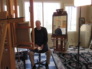 Below, view from the sitter's chair, as Jamie showed me how he begins a portrait:)
