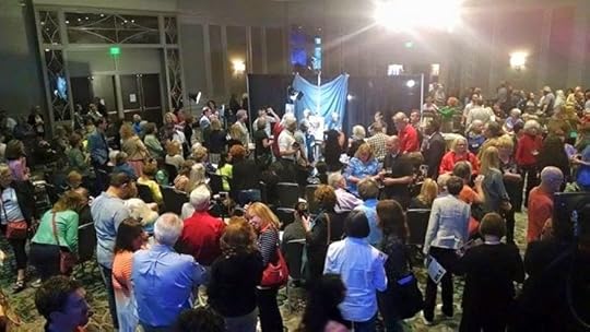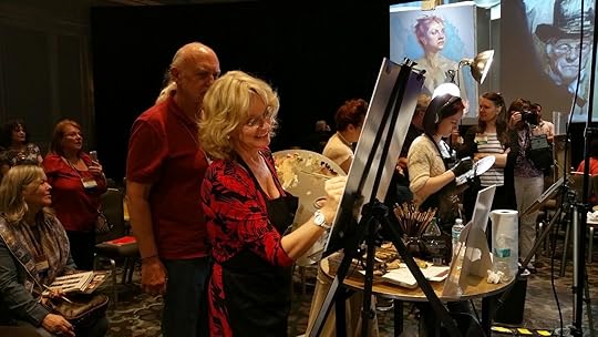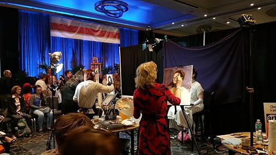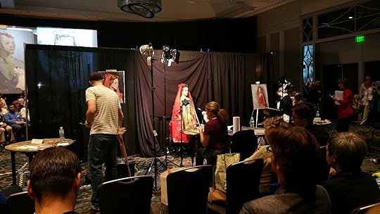 Above, an overview of one end of the ballroom. All of the painting stations were set up in the center, so that conference attendees could move around the perimeter to watch each artist's progress.