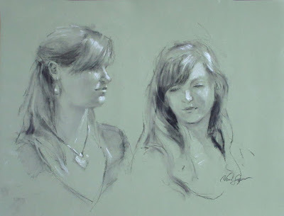 Dori and Rachel Double Charcoal Portrait from Life
