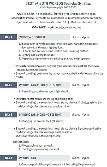 Please contact: workshops@portraitsinc.net to register.This workshop is open to all artists - please contact me if you have any questions about whether this is the right workshop for you!