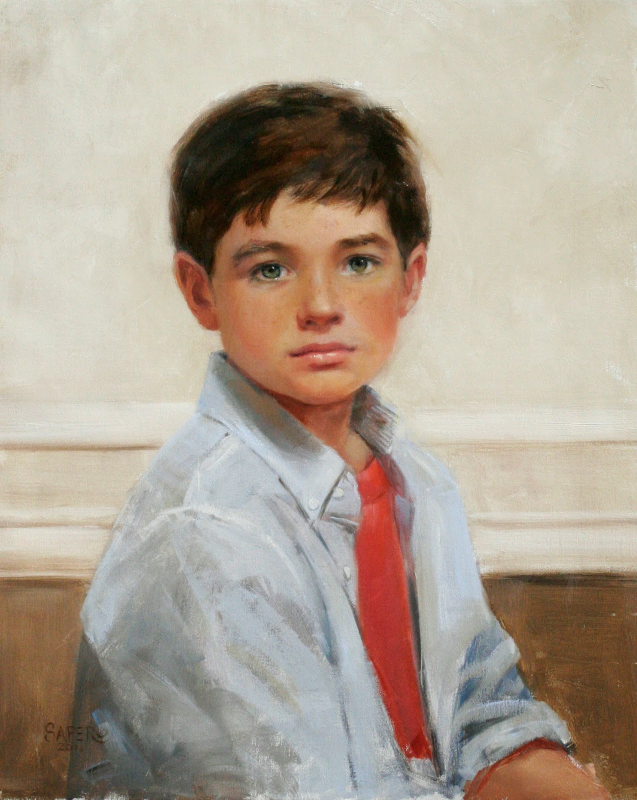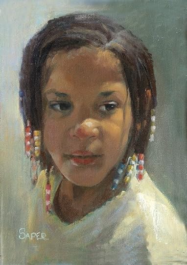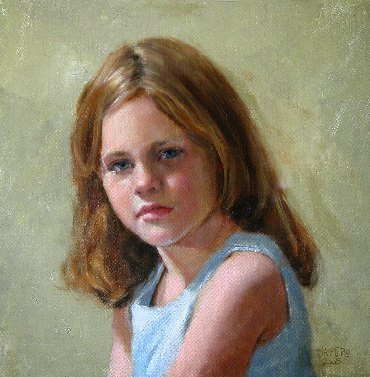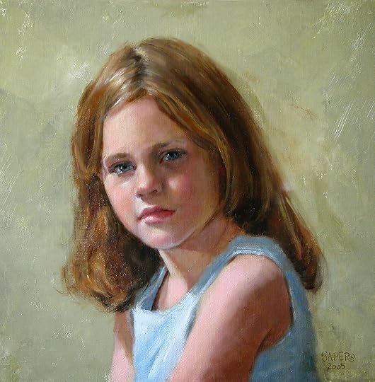 I loved meeting this lovely child, she is as sweet as she is beautiful. In this painting, I wanted to capture her quiet, inquisitive nature and patient demeanor.