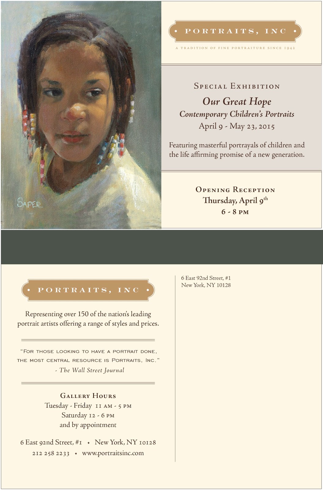 "Our Great Hope", Contemporary Children’s Portraits April 9 - May 23, 2015 Portraits Inc, NYC Gallery - Opening Reception Thursday, April 9th 6 - 8 pm