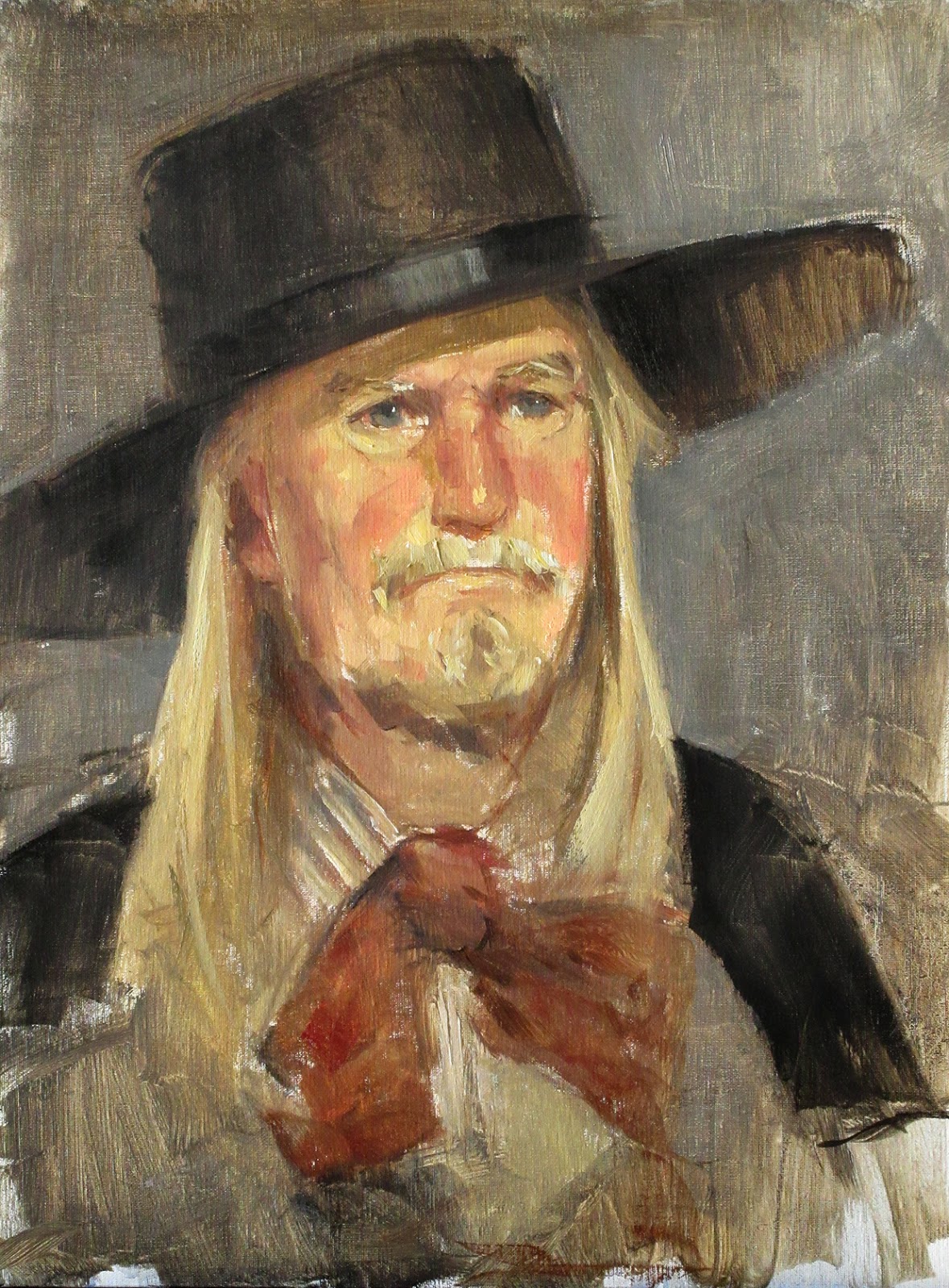 From Friday's Open Studio at the Prescott Mountain Artists' Guild. Bob is one of the best models at the MAG - he works at Prescott's Palace Bar (on the infamous Whiskey Row) and has fabulous western costumes he wears daily. He was authentic right down to his boots and spurs, but I would never have enough time to paint the whole look in a three hour session!
