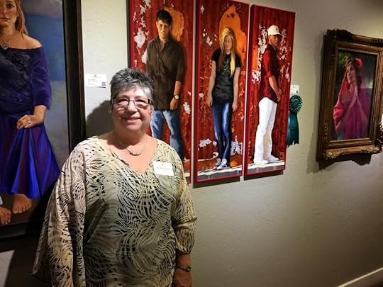 Above: Portrait artist Chris Saper with two her entries, a self portrait and "William Whitaker: American Artist", which took the Best of Show award