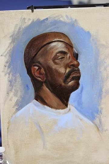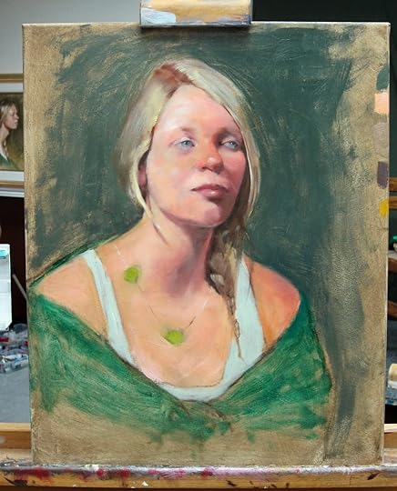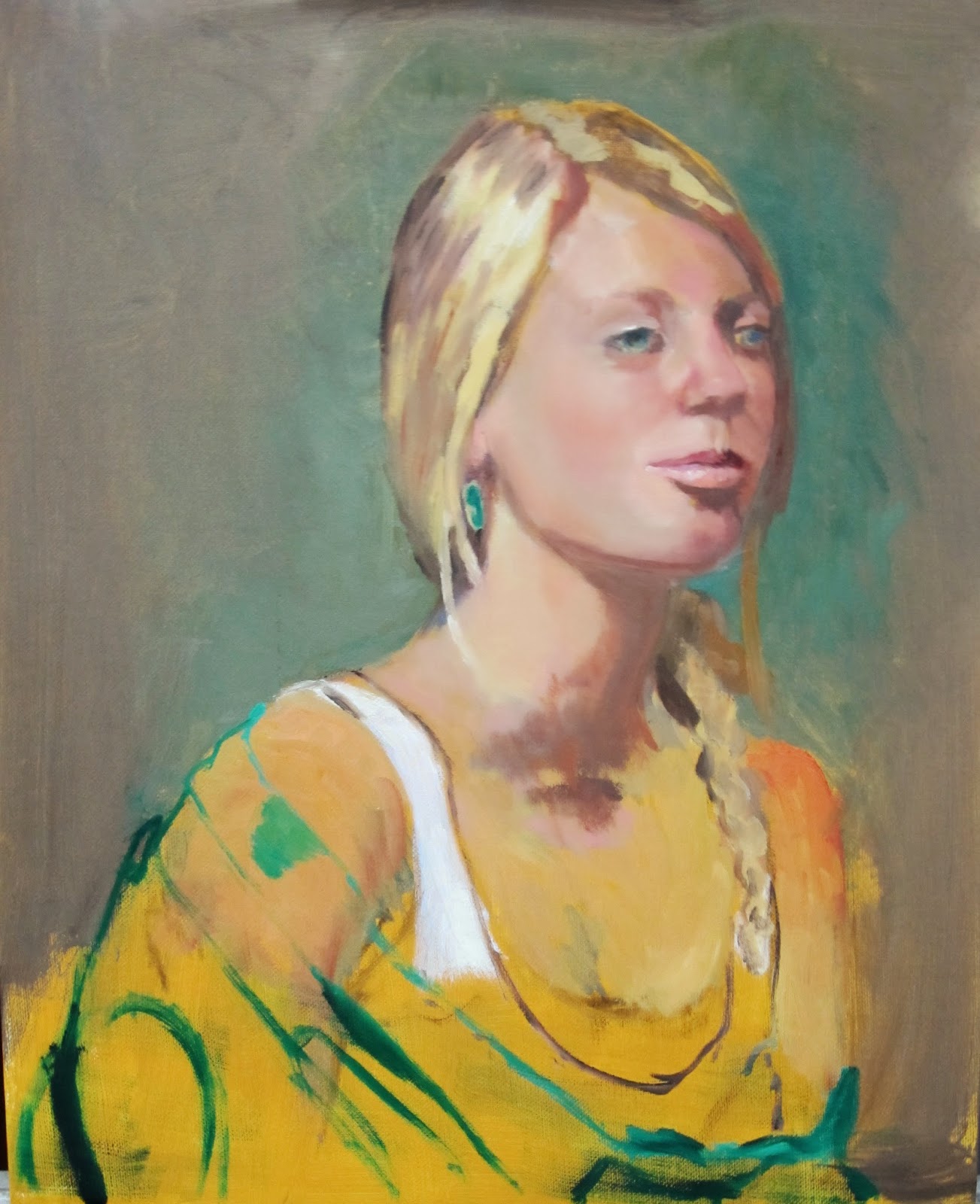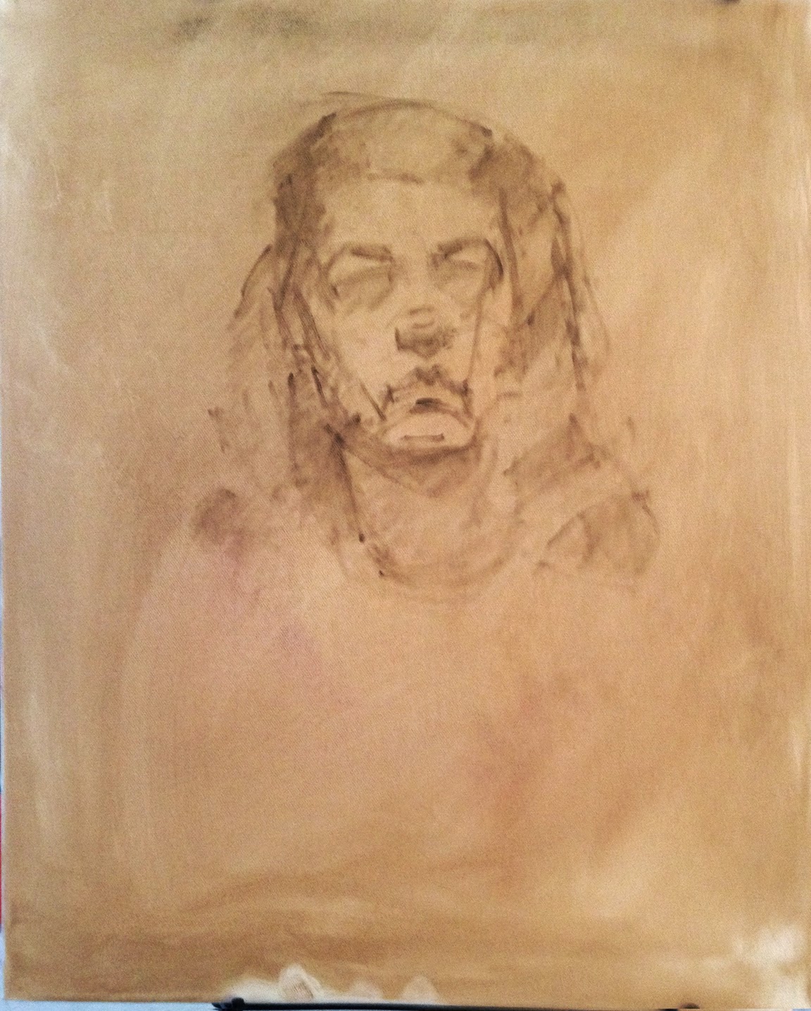 Some quick steps from yesterday's session - a warm light source underscored our model's strong Hispanic features, oil, 20 x 16