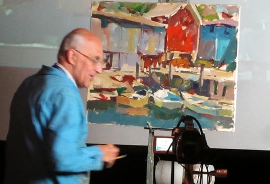 Charles Movalli's charming and very entertaining demo. This man is a seriously funny storyteller. One of the numerous quotes he shared. Artist 1 says: "Why in the world did you ever decide not to 'finish' this painting?' Artist 2: "Why in the world did you decide to even START that painting?"