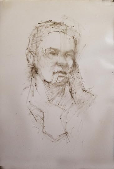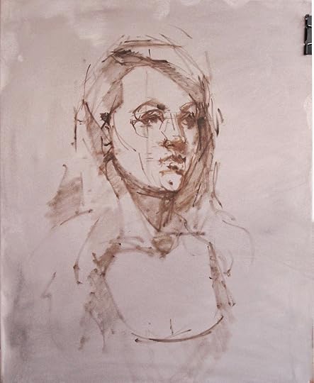 I stated the drawing with a bit of Raw umber, as I always do, and discovered right away that once the stroke is down, it stays there unless it's wiped clean with mineral spirits.Also, it doesn't slip around like it would on linen.