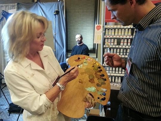 I dashed from the EARLY discussion to the Exhibitors' hall for my demo of fellow artist Oscar Peterson, using Gamblin Colors, Rosemary Brushes and the New Wave hand-held art palette.
