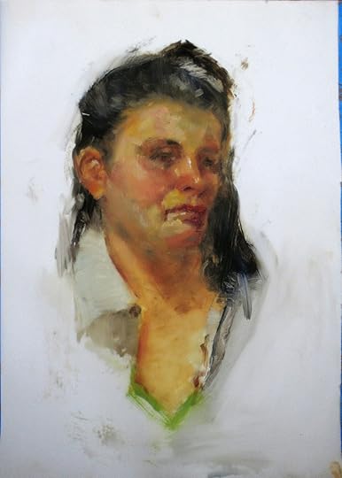 It's not in my nature to have a light touch, so I had to fight it for the rest of the study - but I was really glad I did because it helped me experiment with using more impasto - assisted by Gamblin's Oil-free Solvent, which I've begun using on my regular palette