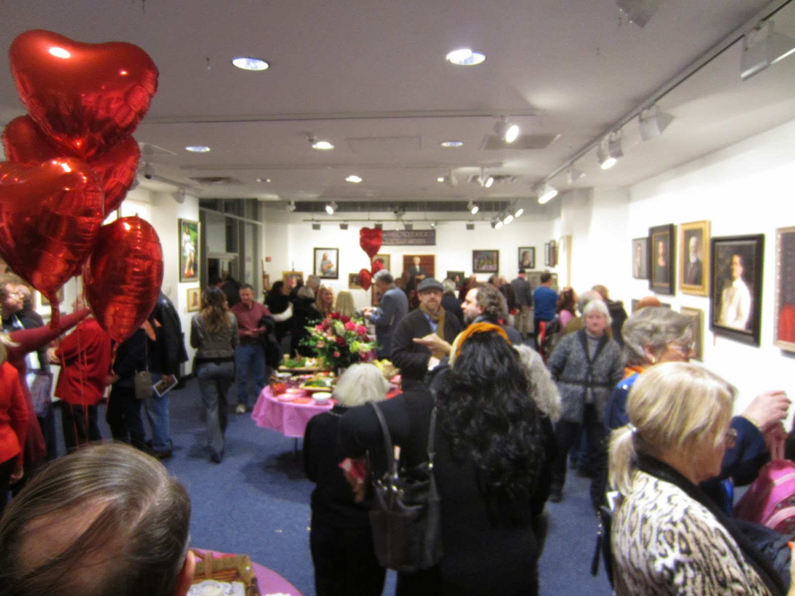 Below the opening night - the theme was Valentine's Day so you'll see lots of red:) The opening reception was packed, despite near zero temps, icy streets and lots of snow. Jurors Robert Alexander Anderson and Lea Colie Wight judged an extraordinary show...artist Harry Burman took a prize for his excellent self portrait.