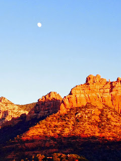 Three days of excellent instruction, followed by the Sedona Plein Aire Arts Festival's opening paint-out made me one lucky painter. Although arrival day found me in a seedy motel (looked OK on the internet), I was treated to an almost-full moonrise and a gorgeous sunrise.
