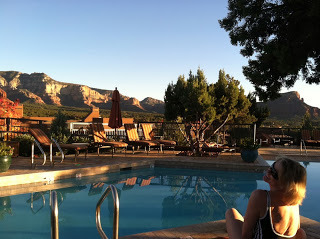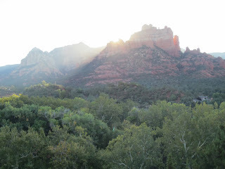 Lest anyone worry that the event was too relaxing, it was, as you can see, essential to closely review the principles of atmospheric perspective from the viewpoint of the not-seedy hotel into which I moved right after that sunrise. My college roommate dashed over from the coast to hang out in Sedona for a few days and she insisted that I do this homework. It was not my idea.