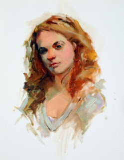 and below, BTW was last week's model Kelsey. Both are 20 x 16, oil on Fredrix Blue Label Polyflax canvas. I used Gamblin's new Solvent-free Gel Medium on both paintings as well.