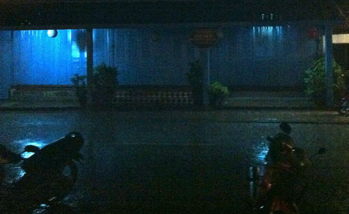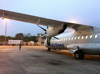 I flew into Luang Prabang, Laos, on a ATR prop plane in a violent thunderstorm. The plane wasn’t full, but a fair number of the passengers were being violently ill in the turbulence. The vomit didn’t stay neatly in the bags, but luckily there wasn’t all that much of it, because most people had wisely eschewed the box dinner provided on the flight.