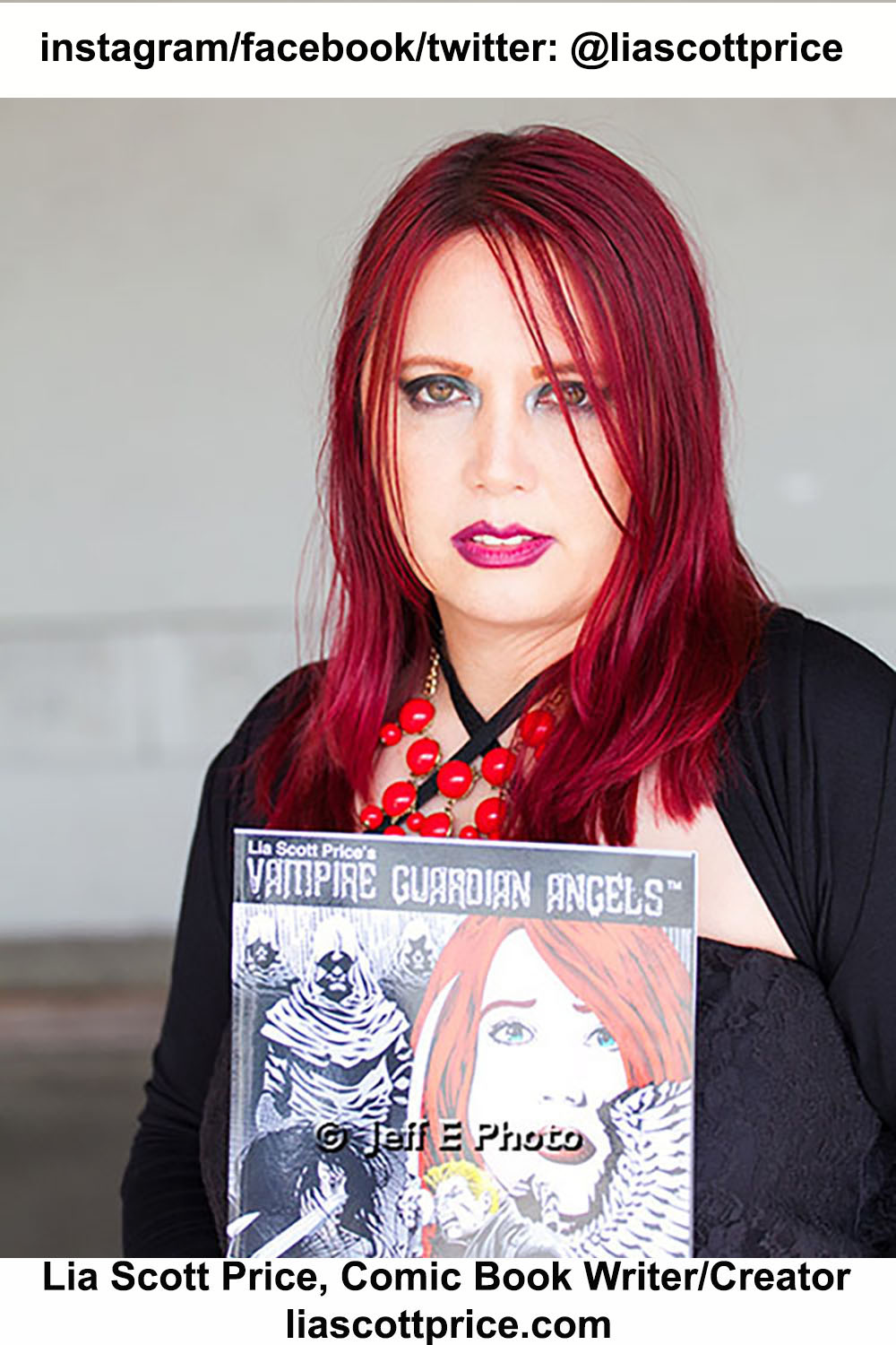Bio: Lia Scott Price is the creator of "Vampire Guardian AngelsTM". She is a horror/vampire author, film producer, and comic book writer/creator who features her characters in her trilogy novel, graphic novel, films, and comic book series. Lia self-publishes her books and self-produces her independent films. Lia appears as a character in her Vampire Guardian Angel Trilogy Novel, Films, and Comic Books Series. She is CEO of Lia Scott Price Productions Inc. Her film production company turns her novels into films. She is also an actress, director, and cinematographer. Lia features her characters in the following books and promotional films: "PRA/EY" (Film Short), Vampire Guardian AngelsTM Comic Book Series, "The Guardian, Revenant, and Dominion" (Vampire Trilogy Book and Graphic Novel), "The Serial Killer and Vampire Guardian AngelTM Diaries" (Film Shorts), "Scenes from A Novel" (Film Shorts), "The Guardian" (Feature Film), and "Dominion" (Feature Film). Lia's books and films are distributed through createspace.com, amazon.com, amazon kindle and amazon video downloads. (Taken from Lia's website)