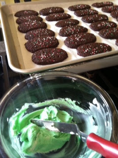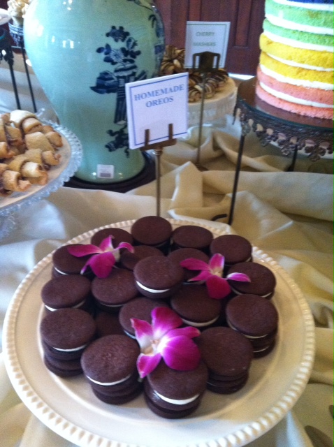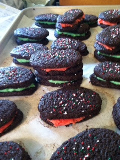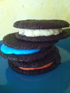 Homemade Oreos(adapted from Bake Happy by Judith Fertig)Makes about 16 (3-inch) sandwich cookiesCookies:1 cup (226 g) unsalted butter, cut into pieces 3/4 cup (170 g) granulated sugar 1 cup (175 g) semisweet chocolate chips 1 large egg1 teaspoon vanilla11/2 cups (188 g) unbleached all-purpose flour 3/4 cup (88 g) unsweetened cocoa powder 1 teaspoon fine kosher or sea salt1/2 teaspoon baking sodaVanilla Filling:1/2 cup (113 g) unsalted butter, at room temperature 12/3 cups (195 g) confectioners’ sugar 1/8 teaspoon fine kosher or sea salt1 tablespoon milk1 teaspoon vanilla extractFood coloring (optional)