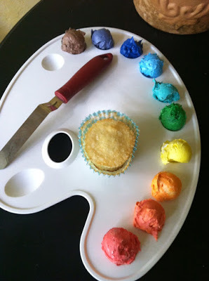 In real life, I found an artist's palette at an art supply store and then colored dabs of buttercream frosting to create a flavor rainbow. I love the idea of flavor energies--represented in color--just waiting to be brought to life to make someone's day, someone's life even more special.