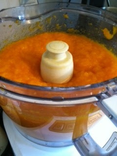 I scooped the tender pumpkin flesh into the food processor, discarding the rinds, and made a smooth puree.