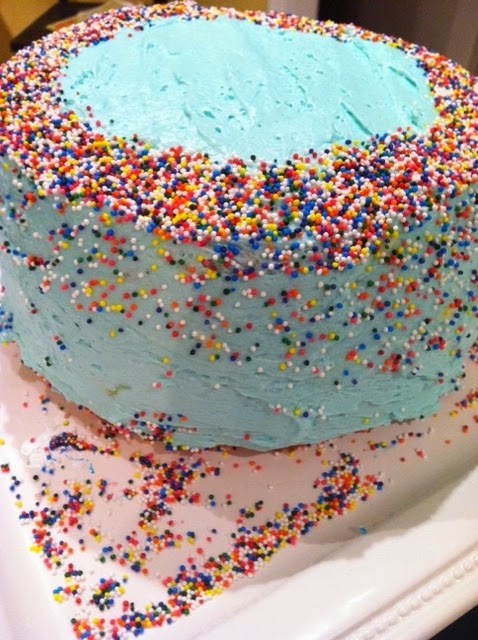 My new favorite way to make one is in five thin layers, each a different pastel, with robin's egg blue or pale turquoise buttercream frosting to finish. Maybe a generous sprinkling of colored sprinkles.