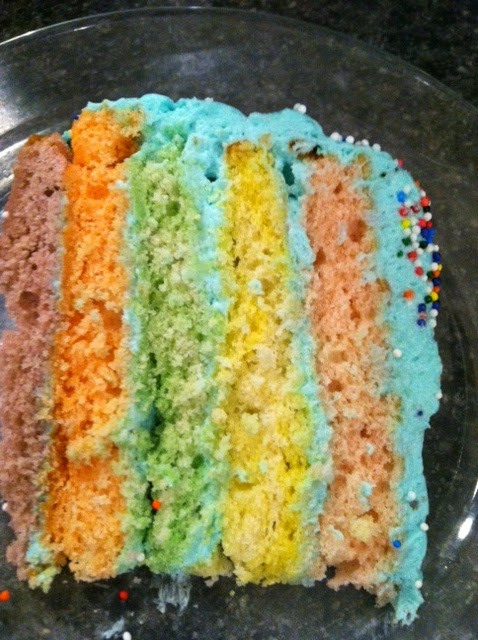 I have a thing for rainbow cake. It's an American layer cake gone happy, happy, happy with color. There’s something about a rainbow cake that just makes me smile. Every colorful layer seems to suggest a different story.