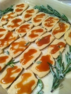 Browned Butter Cookies with Rosemary Caramel DrizzleIf you want to make a great gift from the kitchen, this is it. Browned butter gives these cookies an amazing flavor.Caramel = luxury, sort of like those Lexus commercials, but much less expensive.And sugared fresh rosemary branches add a little sparkle to your holiday cookie platter.These rich cookies underline one of the main concepts of next spring's Bake Happy. If a baked treat is full of flavor, you can feel satisfied nibbling one or two—not polishing off a platter full. Browning the butter with a vanilla bean adds a luscious flavor accentuated by a finishing aromatic drizzle of Rosemary Caramel , which you can make ahead and keep in the refrigerator.