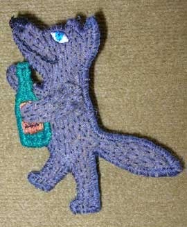 Werewolf with Wne by Michele Irving, an artist who works mainly with fabric, combining this with embroidery, paint and beads.