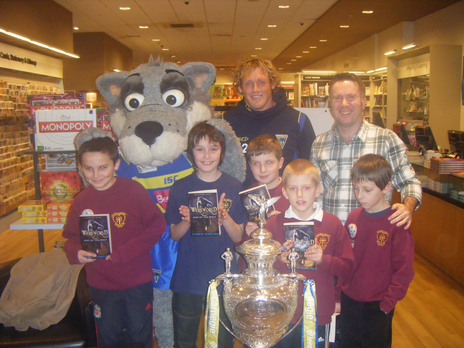 Me, Benny Westwood, my stunt double and the Challenge Cup. Note the sad faced boy in front of me. Judging by his expression and the look of longing he's throwing the trophy I'm guessing he's a Widnes fan...(Waterstone's, Warrington)