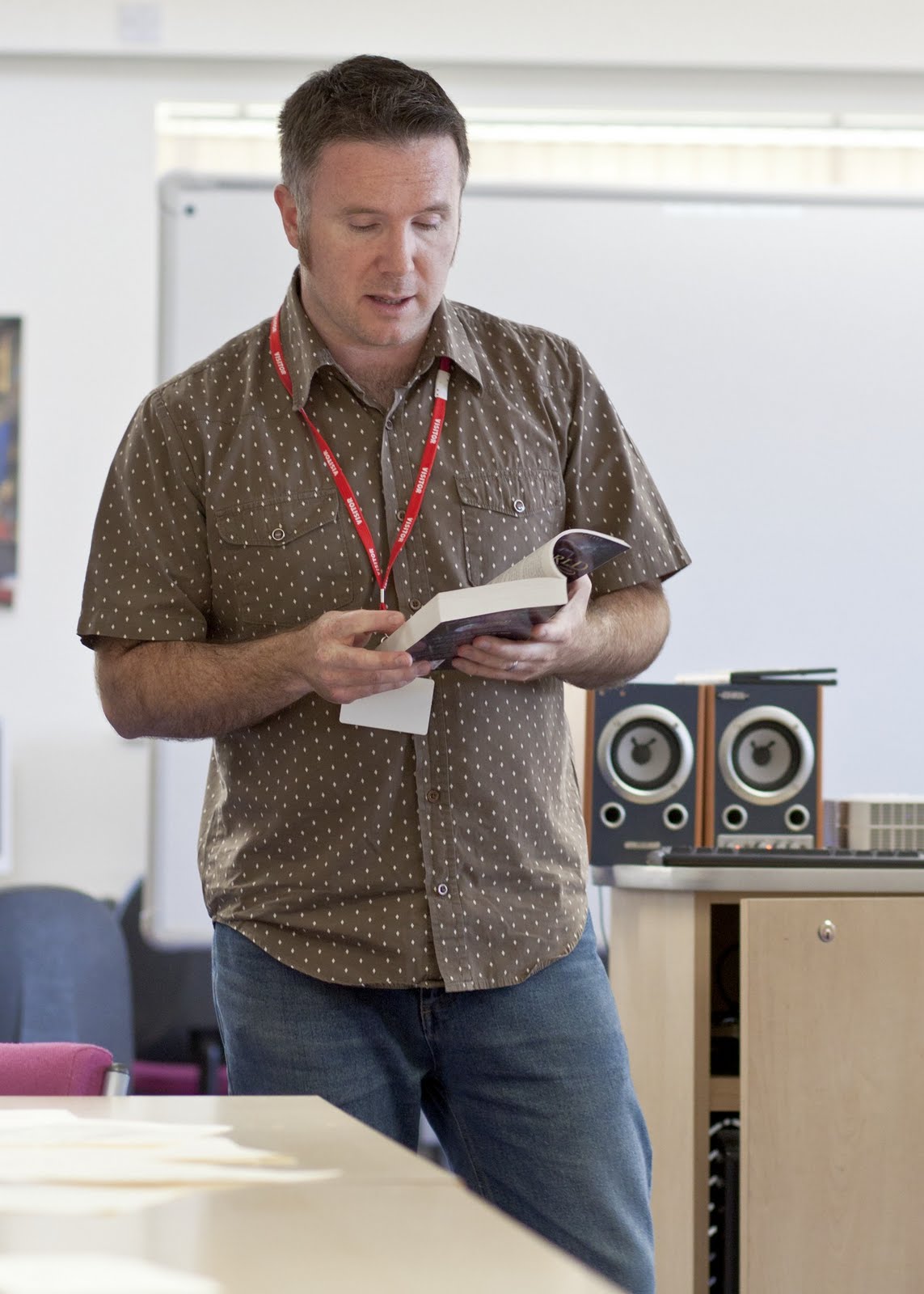 Fat bloke posing in front of books shocker!(St Anne's RC High School, Stockport) Bada Bling!
