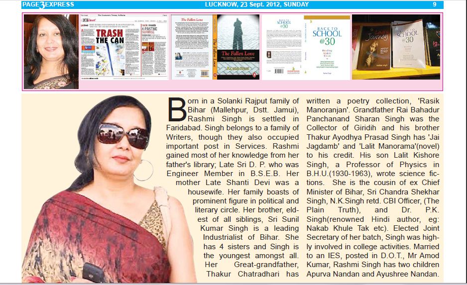 PUBLISHED IN THE 'PAGE 3 NEWSPAPER, LUCKNOW, 23rd SEPTEMBER 2012