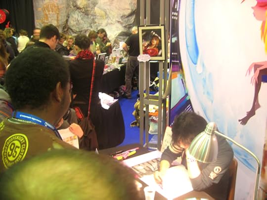 这次漫展的两大功臣:小潘和韩晖。从小潘当初带我第一次参加法国安古兰漫画节,让我的漫画进入国际市场,小潘和我一起工作已经是第五年了。他付出了相当多相当多的辛苦,也造成了不少中国人的荣誉,他成了法国人的中国漫画专家,他仍在和我们一起努力,向全世界推荐中国漫画。我很敬佩他,我一直希望能尽自己可能地帮助他。韩晖兄弟,他和我是邻居,第一次见到他,丫穿着件日本范的小t衫,长发,很瘦。怎么看都是个动画公司里爱打扮的小帅哥么,这种家伙我很熟悉,他们往往是公司里画得比较一般的那个,却往往是老板比较宠信的那个。但后来发现韩晖兄弟可完全不同,他和那些只靠外表吃饭的家伙完全不同,韩晖靠的得是真本事,他有真能耐,他所做过的了不起的事情也远不是那些靠人恩宠的家伙所能想象得到的了不起。韩晖有神奇的过去,他也定有神奇的未来。说心里话的话,他和我一样,我们是能制造奇迹的人类。相处已经三年后的今天,我很高兴,我们终于一起做了件漂亮的事。