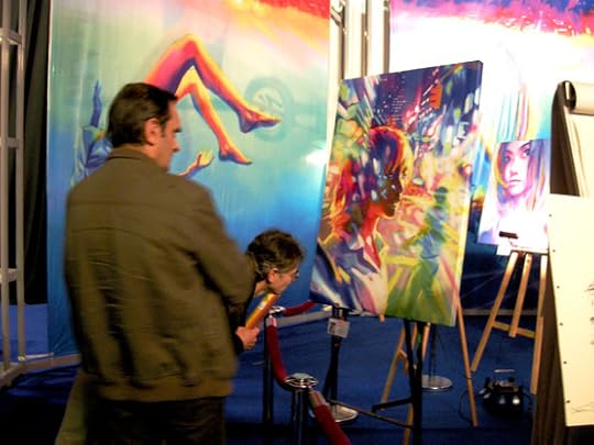 法国colomiers漫展,一个是法国arludik画廊。一个提供场地及布展资金,一个提供现场展示的在德国制作的高档布面油画方式数码打印件及制作资金和技术。据说一张画成本也要几千人民币。