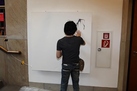 奥登堡市最开心的还是遇到了多年不见的老朋友,旅居法国的华裔画家陈江洪兄弟。因为手机丢了好多次,所以好几年我们联系不上,没想到居然在另外一个国家萍水相逢,甚至又一次一起办展。而且,按照奥登堡市政府的安排,我们合作即兴现场创作巨大油画一幅。一向靠谱的德国人因为对艺术的陌生,只买了一只油画笔。于是我把油画笔让给油画家陈江洪兄,不搭调的我就徒手抓颜色往画上抹。我们画了十分钟,一直在讲笑话。嘲笑这次奇怪的即兴创作。据说奥登堡市长买下了这张画要挂在办公室中。