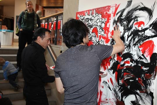 我们的院长Benjamin先生出席德国奥登堡市中国主题童书文化展,在奥登堡市举办个人画展,展览期间没有画笔的情况下,与来自法国的华裔艺术家陈江洪一起,徒手现场即兴创作巨幅油画。并作为中国本色视觉艺术学院的老师,为德国奥登堡中学的学生们义务教学电脑美术课,这次展览为与中国有着大量商业合作的奥登堡市政府出资,旨在向德国家长和年轻人介绍飞速发展中的中国文化人物。让德国人了解中国。其中来自世界各地的中国艺术家的超前意识和强悍水准,让德国人十分震惊。