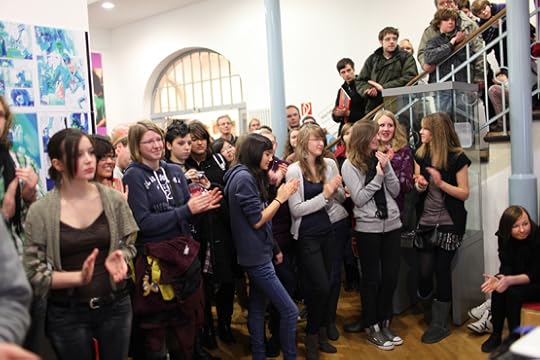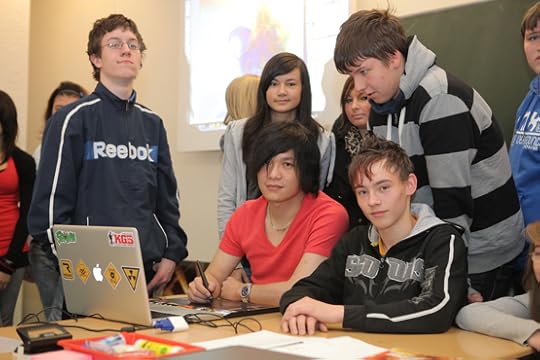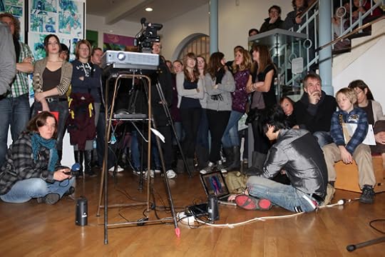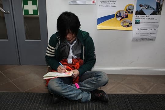 我为什么会出现在这次展览中?据说是德国方面的要求。他们邀请的都是他们所熟知的中国艺术家,除了我之外,以生活在海外的华裔为主。我在图书馆一楼大厅举办了一次个人展。做为来自中国本色视觉艺术学院的老师,我去德国中学做了一节电脑绘画的义务教学课。那些压抑的蓝色绘画,和关于中学生渴望自杀的故事,令他们十分震惊。他们对中国的了解目前还停留在古代文化阶段,对当代中国年轻人的精神世界可以说毫无头绪。现在他们明白了:中国的年轻人和他们一样。穿着一样的时髦衣服,生活在一样现代化的都市中。而我全电脑创作的方式对一般德国人来说也是难以想象的,只知道中国人爱写毛笔字的他们当然没有想到我已经泡在当代艺术最时髦的领域好多好多年。