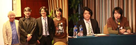 2012年5月11日我们的本杰明老师、寒放老师和来自日本的《超时空要塞》之父美树本晴彦老师,大友克洋连载漫画《AKIRA》担任主编的由利耕一老师在IDAC国际数字艺术交流会进行记者见面会。