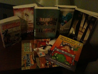 My loot!And, no, they aren't ALL for me. I picked up a few for Kristin, a few for Heather , and one for a lucky booKrushed giveaway winner! (Giveaway to be announced at a later date, but don't worry, I'll keep you posted.)
