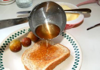 CAROB MOLASSESWe mentioned Carob in our post on vegetables and made passing reference to the pods being used as a sweetener. Today, we’ll examine that in greater detail. The syrup is produced by shelling the beans and finely chopping the empty pods into water. This mixture is then cooked to extract the sugars from the pods, It is strained and reduced into a thick syrup, or carob molasses as it is called. Carob molasses is 100% carob extract with a rich aroma, flavor and color. It has a high natural sugar content, and can be used alone as syrup, or as sweetener, colorant, and flavoring agent in ice-cream toppings, cakes, cookies, and sweetmeats.