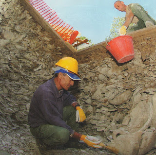 The majority of the amphorae found at Monte Testaccio came from the Roman province of Hispania(modern Spain and Portugal) and are of a style archaeologically known as a Dressel 20. The remainder came from what we now call the Middle East. A Dressel 20 is a squat, round amphora that resists tipping. They would have been ideally suited to riding in a ship’s cargo hold. Imagine rows of ships docking in the Roman harbor of Portus, each one filled with hundreds, perhaps thousands, of these amphorae. Shipwrecks have been discovered in the region with full loads of Dressel 20’s.