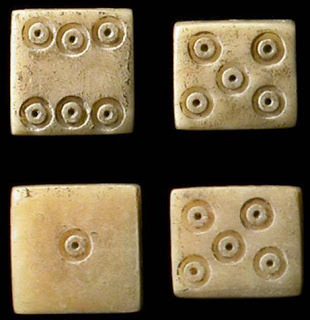 In addition to using dice to settle disputes or distribute goods impartially, they were also used for entertainment and gambling. One popular game was Tali. Like the familiar dice game Yahtzee, the count of the dice was scored like poker hands. No special board was needed. If you didn’t have dice, you used animal bones. A round consists of each player throwing and the winner of that round was the one with the best hand. Multiple hands could be added for a total score to determine the winner. A Venus was the highest hand and consisted of a one, three, four, and six. A Senio was a six with any combination of other numbers. Vultures were all the same numbers and the worst score you could get Dogs, was all ones.
