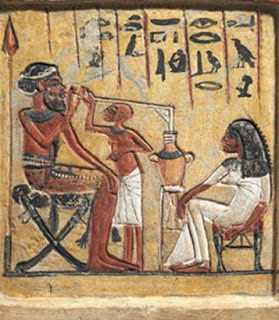 The Egyptians discovered that bread baked with malted (sprouted) barley remained fresh longer than the plain variety. Because the malting process converted many of the grains starches into sugars, it also was highly fermentable. A clay tablet dating to 1,800 BC known as the Hymn to Ninkasi (the Sumerian Goddess of Brewing) contains an ancient recipe for making beer. Loaves of bread made of malted barley flour were twice-baked then crumbled into a mixture of malted barley and water, and left to ferment. Sweet syrup was added to the final mash. Ancient beers contained no hops; the brewers added sycamores instead. Recall from our post on fruits and nuts that this would reference sycamore figs, which probably supplied the sweetness mentioned above.