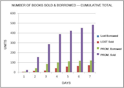 UNANSWERED QUESTIONSCareful study of the accumulative sales graph shows that, while I met my sales goals, the number of sales per day dropped on Monday, day 4, and declined each day thereafter. Was this because there’s less activity during the week? Will sales rebound this coming weekend? Or is this the end of the tail (tale)? Will there be any long-term affects on sales? Tantalizing as they may be to speculate, it’s too soon to answer any of these questions. However, I will be monitoring sales of LOST for the next few weeks. As people complete PROMISES, they'll be exposed to the promo for LOST. Seeing a secondary upward trend in sales would be interesting. Regardless, most companies advertise their products continuously. PROMISES has three additional free days in the current 90-day period. LOST has five. And I intend to use ‘em.