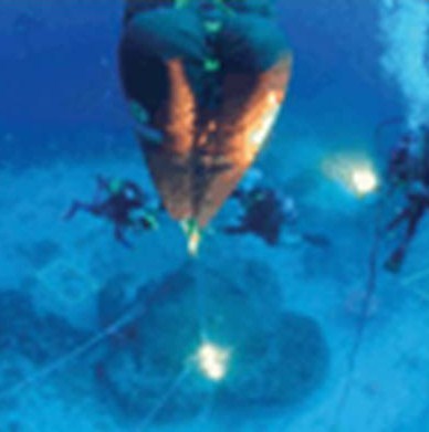 The particular ship they found was carrying a column when it sank. It cargo consisted of eight marble column drums, each about five feet across, and a capital. Stacked one atop the other, the drums would have formed a 30-foot-high Doric column.